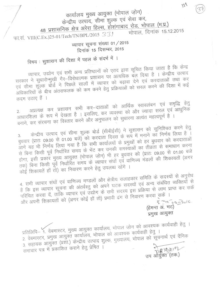 trade Notice No. 22/2018-19. dated 06.07.2018 of Bhopal GST Comm'te