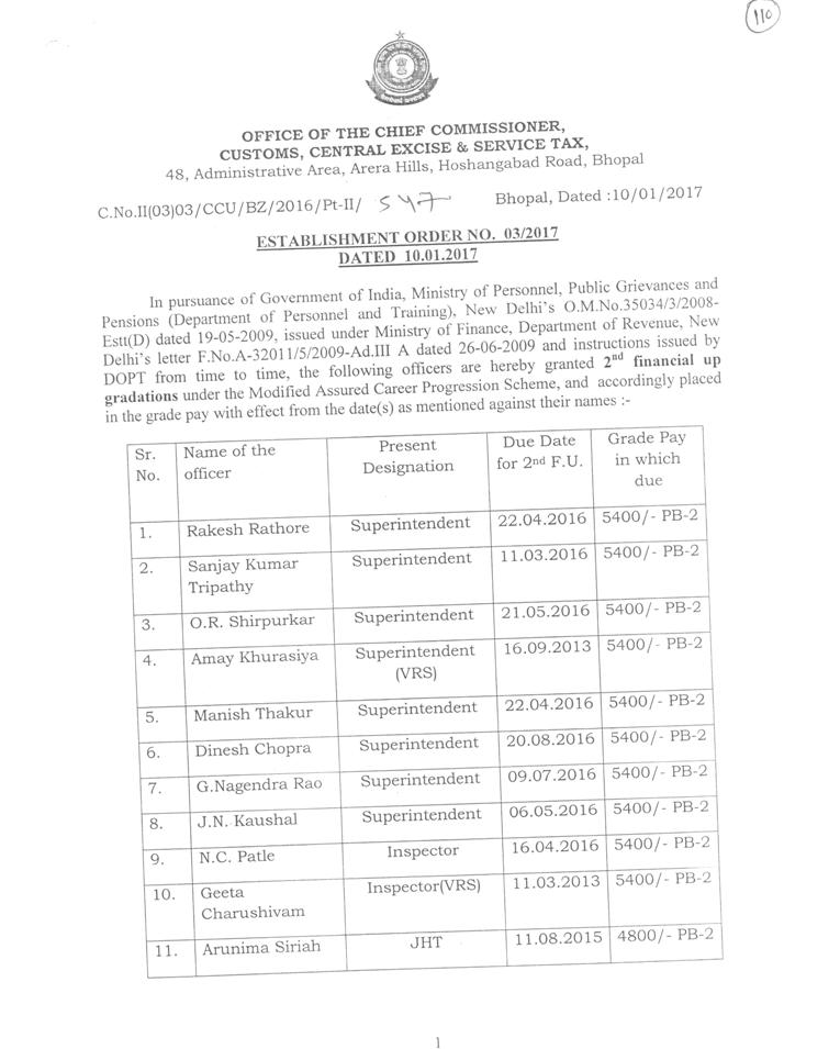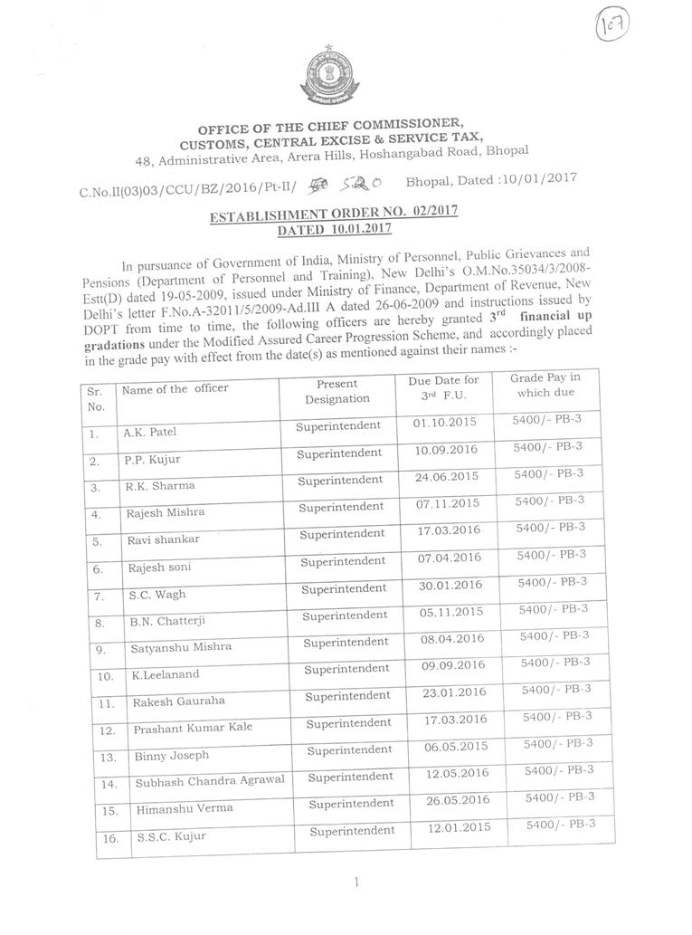 Order No. 02/2017 dtd. 10.1.2017 in r/o Supdt (IIIrd financial