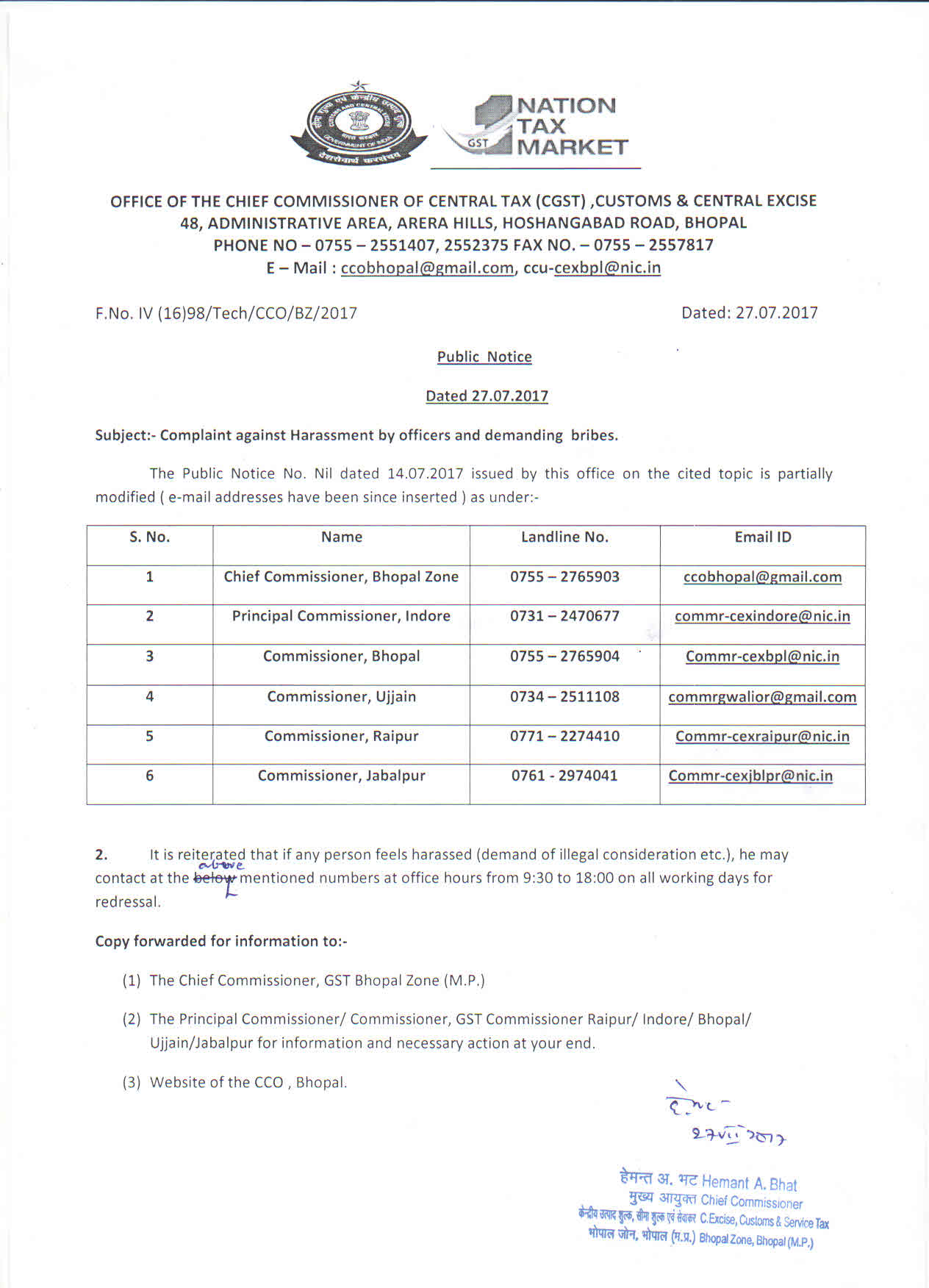 Public Notice No. 01/2017-18 dtd. 14.03.2018