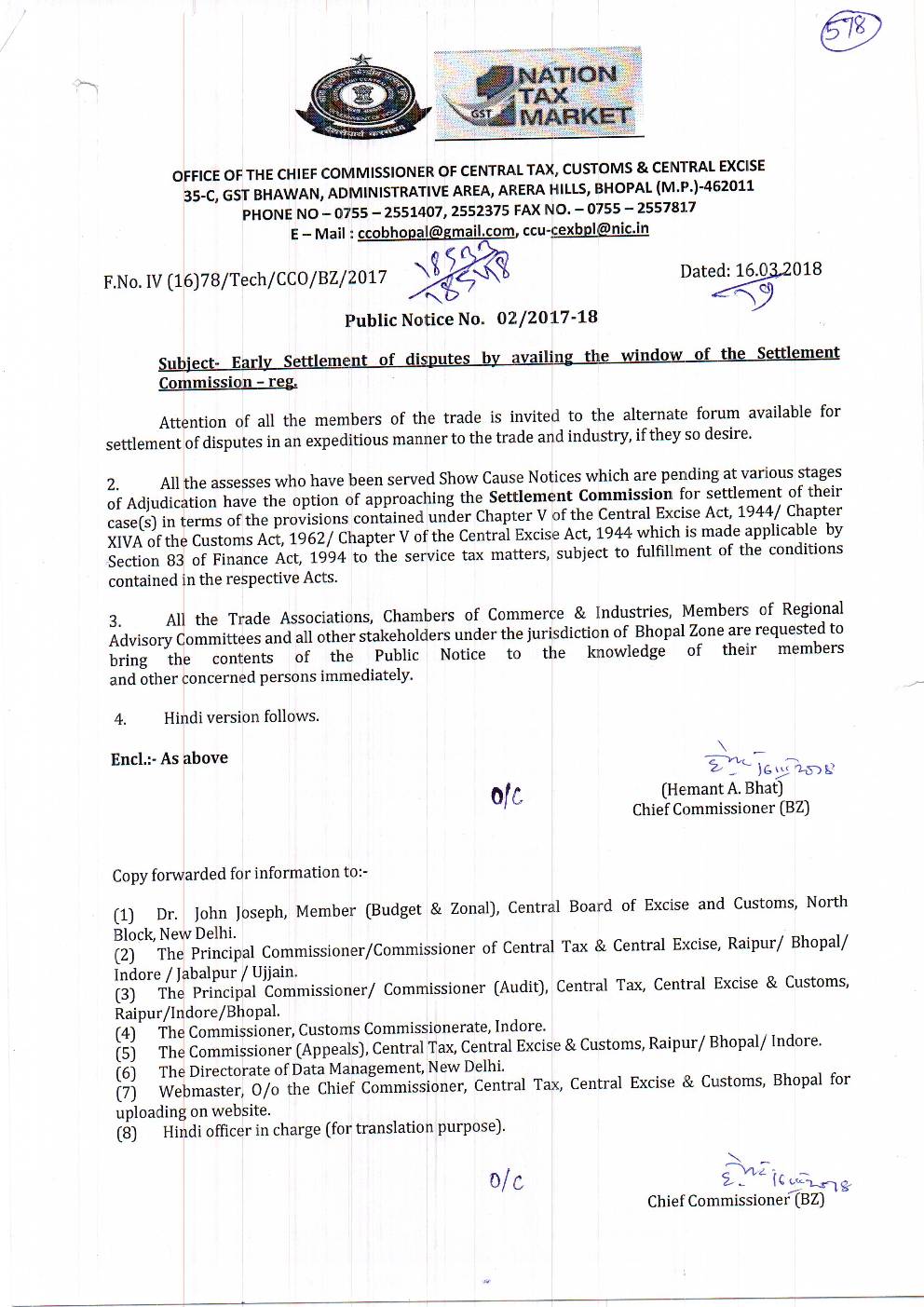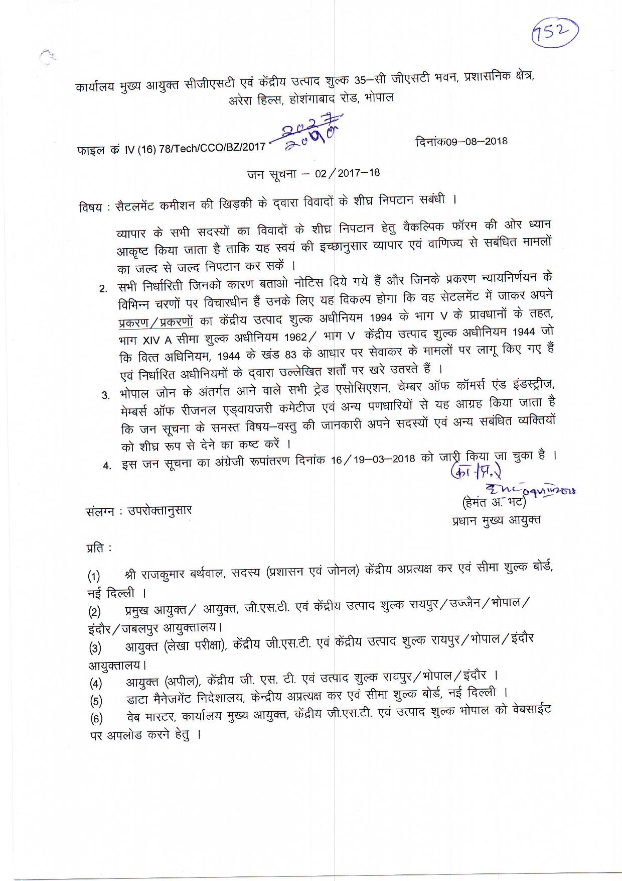 Public Notice No. 02/2017-18 dated 16.3.2018 (Hindi Version)