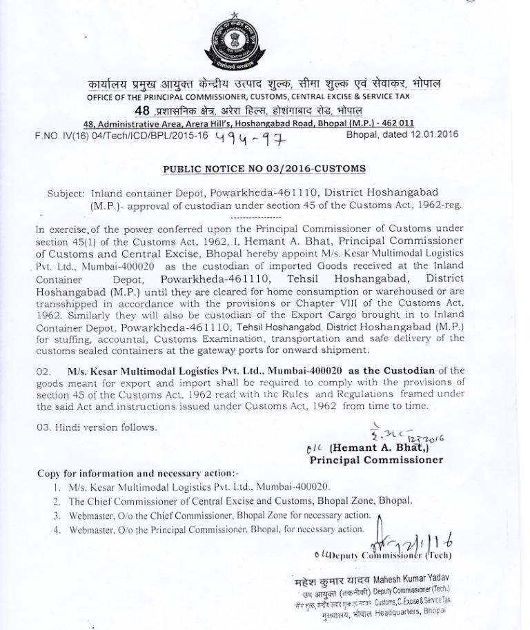 Public Notice No. 02/2023(Customs). dated 05.04.2023 of Bhopal Zone