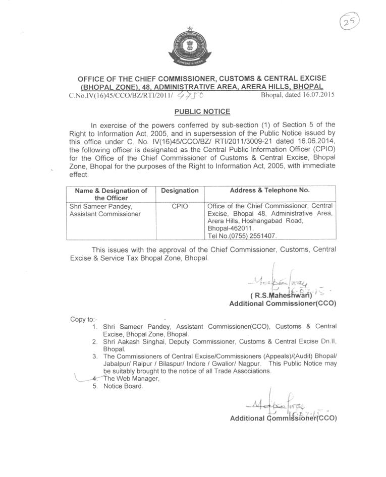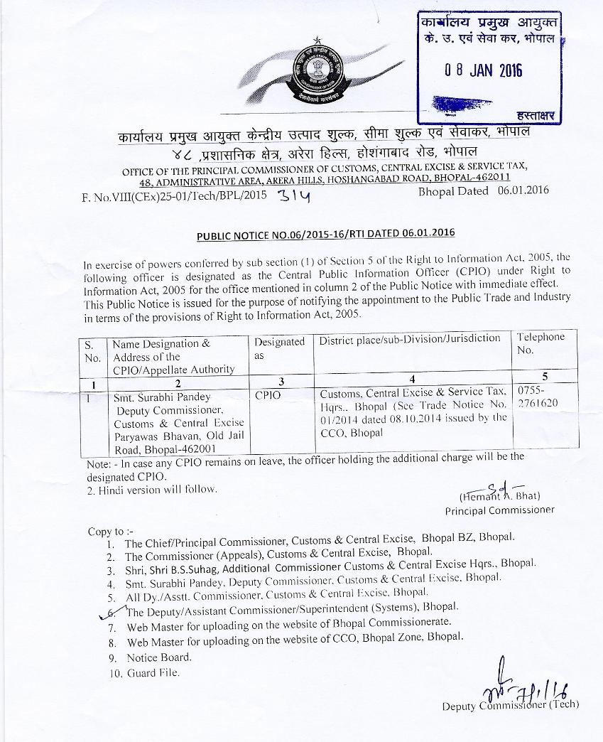 Public Notice No. 06/2016-RTI dated 06.01.2016