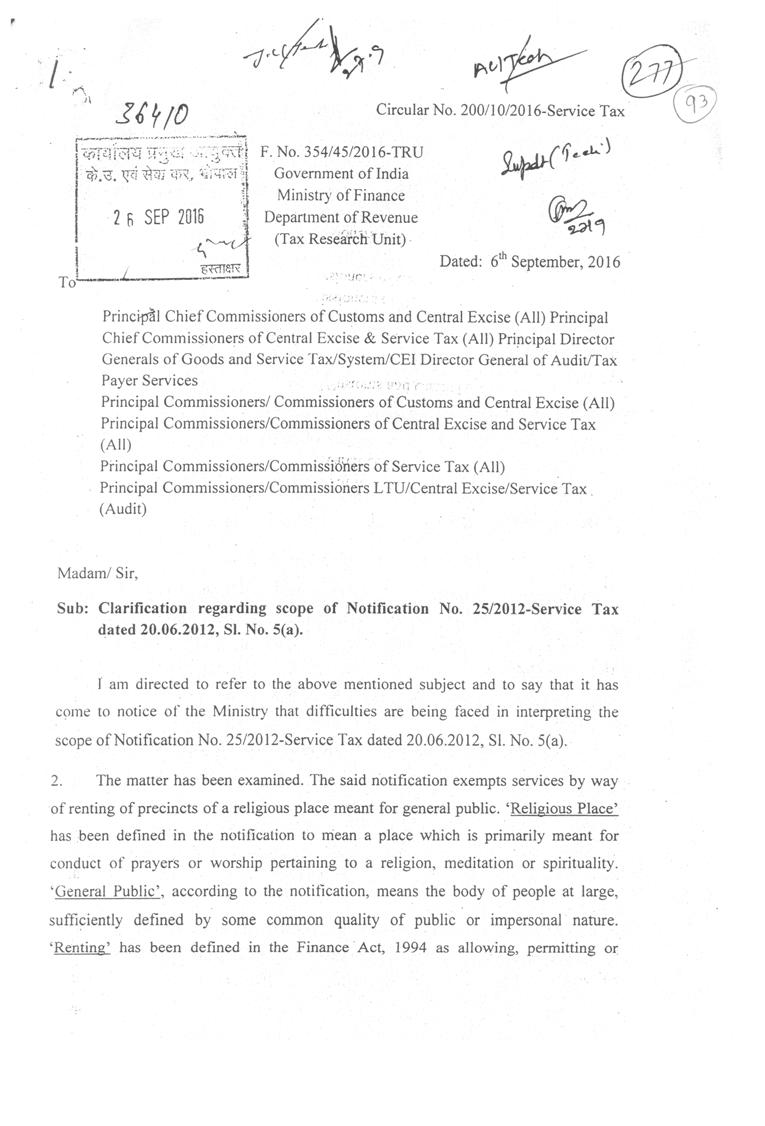 Clarification regarding scope of Notfn No. 25/2012-ST
